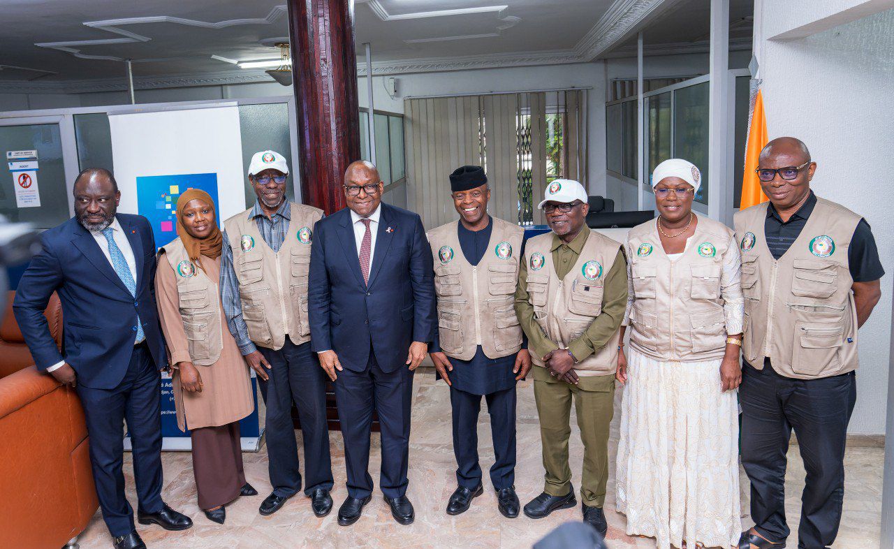 Me René BOURGOIN, Président de la HACA en compagnie de Monsieur Yemi OSINBAJO, ancien Vice-Président du Nigeria, à la tête d’une mission conjointe CEDEAO-UA